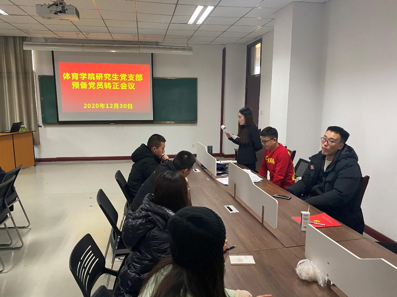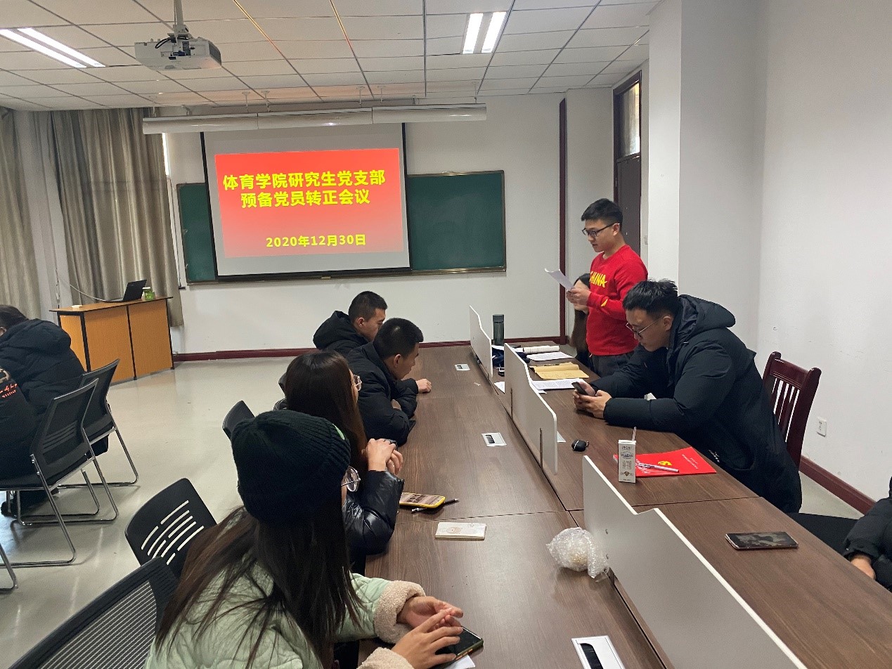 2020年12月30日上午10点,太阳集团tyc539macau研究生党支部在太阳集团tyc539macau503教室召开了关于鲍粉苗、杨少波两位同志的转正会议。本次会议33名党员参加会议,其中有22名正式党员,11名预备党员。会议由支部书记何晓雁主持。