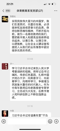 体育教育系党支部学习习近平总书记 在中国人民大学考察时的重要讲话