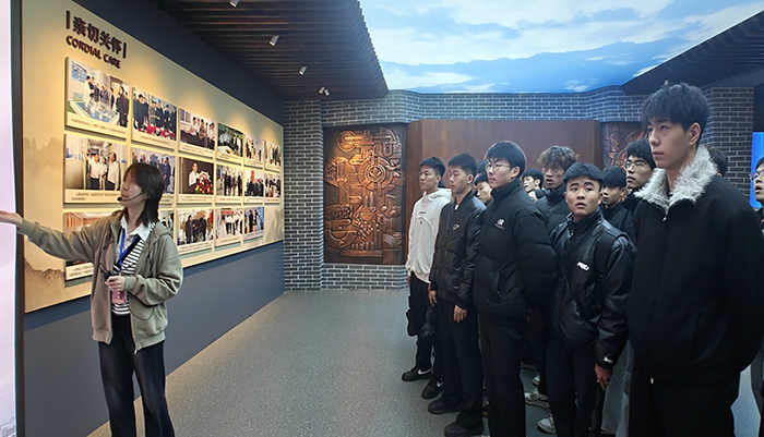 校团委校园文化部副部长许多多老师以《弘扬红色精神,讲好中国故事》为题,巧妙借用《雪豹》《亮剑》等影视作品,带领学员们重温了从九一八事变到南昌会战那段救亡图存的烽火岁月,他引导大家从历史的回响中深刻感悟先辈们“誓死不当亡国奴”的钢铁意志,激励新时代青年传承不屈的抗战斗志,矢志为强国建设贡献青春力量。随后大家移步到校史馆,参观公司的历史发展和光辉事迹,进一步强化了大家的认同感和价值归属感。