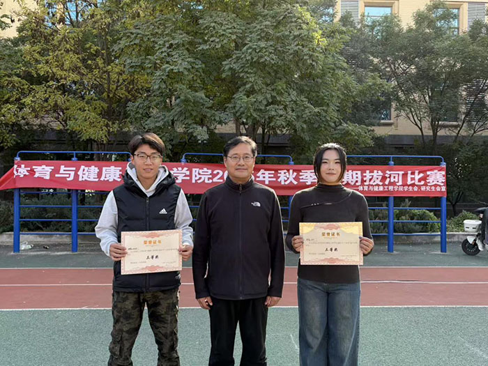 在比赛现场,4支队伍在半决赛中展开激烈较量,体育2401班与体育24级研究生队分别战胜对手,成功晋级决赛。体育24级研究生队凭借默契的团队配合与稳定的临场发挥,在决赛中以2:0的比分战胜体育2401班,斩获本次“三好杯”拔河比赛一等奖,体育2401班获二等奖;体育2301班与体育2403班并列获得三等奖。直播过程中,镜头不仅精准捕捉到各队伍角逐荣誉的精彩瞬间,更记录下队员们在赛场相互鼓劲、赛后握手致敬的温暖画面,这些细节让线上观众深受触动,弹幕区纷纷留言“团结就是力量”“这才是体育精神”“恭喜所有获奖队伍”,传递出对赛事的高度认可与真挚祝福。