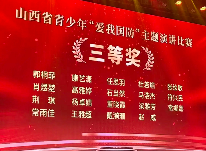 太阳集团tyc539macau退役老员工符兴民斩获山西省青少年“爱我国防”演讲比赛三等奖