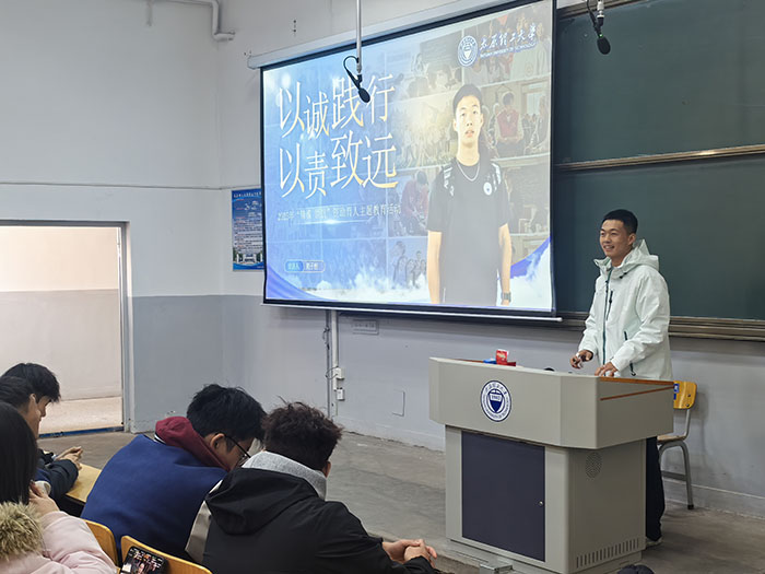 11月23日下午,明向校区行知楼B118教室同样气氛热烈,150名员工现场聆听了优秀研究生马哲莹的成长分享。马哲莹来自体育学专业,研究方向为运动生理学,她在学业科研与体育赛场均取得亮眼成绩。宣讲中,她动情地说:“国家奖助政策的温暖让我能全身心投入训练与科研,白天在操场打磨技术,夜晚在实验室钻研运动训练理论,这份支持是我前行的底气。”她分享了自己斩获多项赛事奖项、发表多篇学术论文的奋斗历程,诠释了体育人“敢拼敢闯、坚持不懈”的精神内核。互动环节,马哲莹针对同学们提出的各类问题逐一解答,实用的经验分享让在场员工受益匪浅。宣讲尾声,她鼓励大家:“国家资助政策为我们搭建了成长的阶梯,唯有以奋斗回应关怀,方能不负韶华。希望大家在追逐梦想的道路上,既要勇往直前,也要懂得感恩,用实际行动诠释新时代体育学子的担当。”
