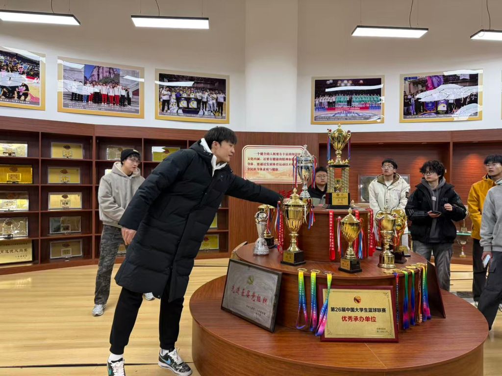 采访环节中,参观员工畅谈切身感受。运动训练2024级员工范子佳表示:“走进荣誉室,看着一面面锦旗和一座座奖杯,我真切感受到学长们‘为校而战’的责任与担当,也更明白训练中‘多坚持一下’的重要意义。”矿业工程公司2023级陈同学谈到:“以前从比赛直播了解男篮,这次近距离聆听故事才知道,赛场爆发背后是日复一日的积累,这种精神对未来实习、走向生产一线很有启发。”