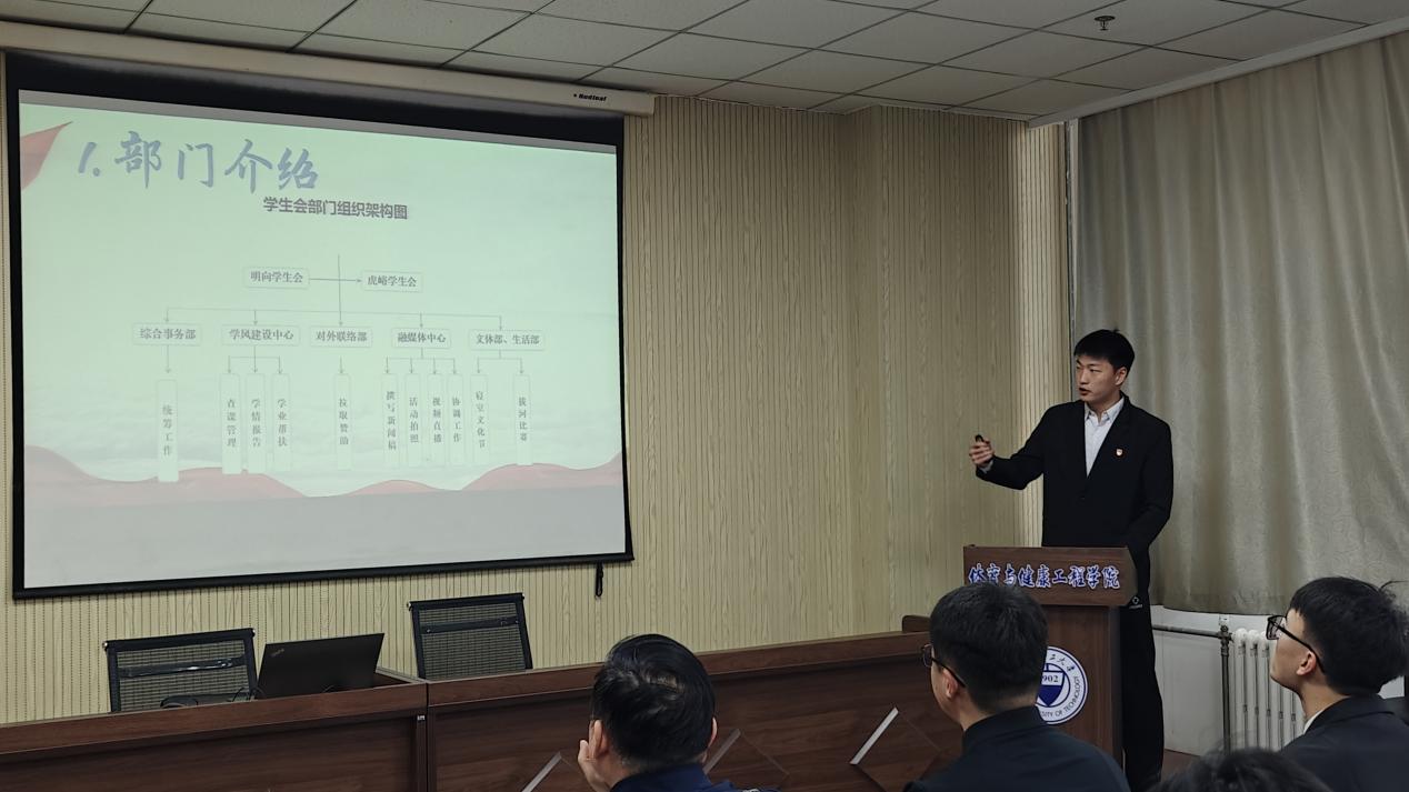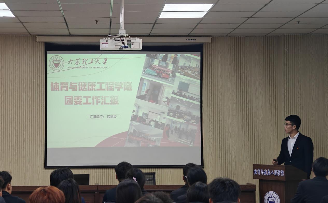员工团委副书记薛全楼从职责成果、改进方向、问题挑战及未来展望等方面展开汇报,通过详实数据与典型事迹呈现团委工作全景,重点梳理秋季学期团课培训暨“青马工程”第三期培训班、团支部进社区开展实践锻炼、走进山西省体育博物馆主题研学等特色工作,并提出2026年春季深化思想引领、拓展专业特色志愿服务、强化基层团组织建设的工作思路。