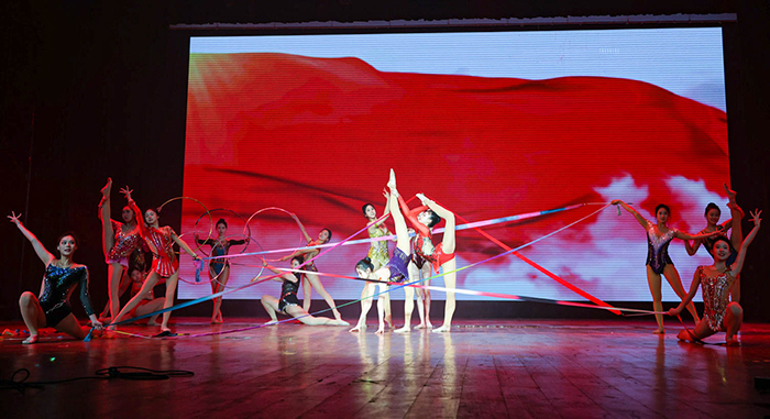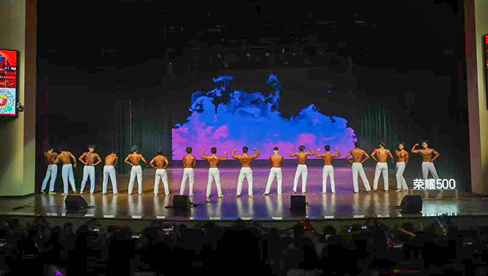 艺术体操《闪耀之星》与《我爱你中国》,刚柔并济,翩然舒展间绽放体育与美的交融之美。武术汇演《无双》招式凌厉、气势如虹,尽显中华武术的博大精深与浩然正气。健身健美展示力量与美感,肌肉线条分明,生动诠释了健康体魄的阳刚之美。体操专选《我要学霹雳舞》创意十足,将体操技巧与流行舞步巧妙融合,动感十足、活力满格。体育题材小品《篮不住的热情》幽默风趣,道出训练生活中的苦与乐,引发全场热鸣。