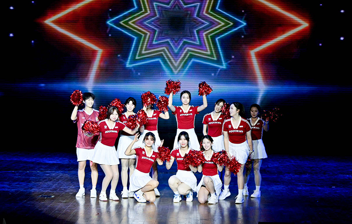 首先登场的乐队带来《男孩别哭》,鼓点铿锵有力,激昂的节奏瞬间点燃全场。由舞蹈表演专业同学带来的民族舞《掀起你的盖头来》舞步曼妙、韵味十足,尽显浓郁的民族风情。独唱《永不失联的爱》和研究生同学合唱《像风一样》娓娓道来青春心事,旋律动人、直击人心。由音乐表演专业同学带来的美声演唱《青玉案·元夕》以高雅艺术提升晚会格调,带来别样的视听享受。