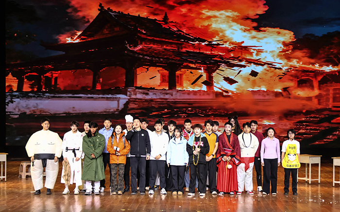 啦啦操《Good Time》活力四射,瞬间点燃全场互动热情。舞蹈《胜利之舞》动感十足,舞步利落有力,舞出青春的自信与洒脱。合唱《苦茶》与独唱《如果有来生》温情脉脉,歌声真挚感人,触动人心。小品《富士游侠》包袱密集、笑点不断,更巧妙融入爱国情怀与正能量元素,以诙谐方式传递家国担当,现场笑声、掌声此起彼伏,氛围持续升温。