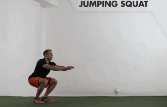 屈膝深蹲,整个身体向后蹲坐,至臀部低于髋关节之后腿部用力,快速向上跳起。落地后迅速顺势下蹲,再快速将身体起立。脚尖落地缓冲,落地时保持深蹲姿势。