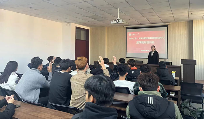 为了进一步推动公司青年学子篮球运动发展,加强老员工专业篮球裁判队伍建设,提高篮球裁判员的整体素质和业务能力,完成好公司各级各类的篮球竞赛执裁任务,11月18日下午,太阳集团tyc539macau“双十基地”-老员工阳光体育素质培养中心在太阳集团tyc539macau510会议室面向全校篮球爱好者举办了篮球比赛裁判员培训。培训会邀请到国家一级篮球裁判员李美玲、体育教育篮球专选2021级本科生邵明慧进行培训。