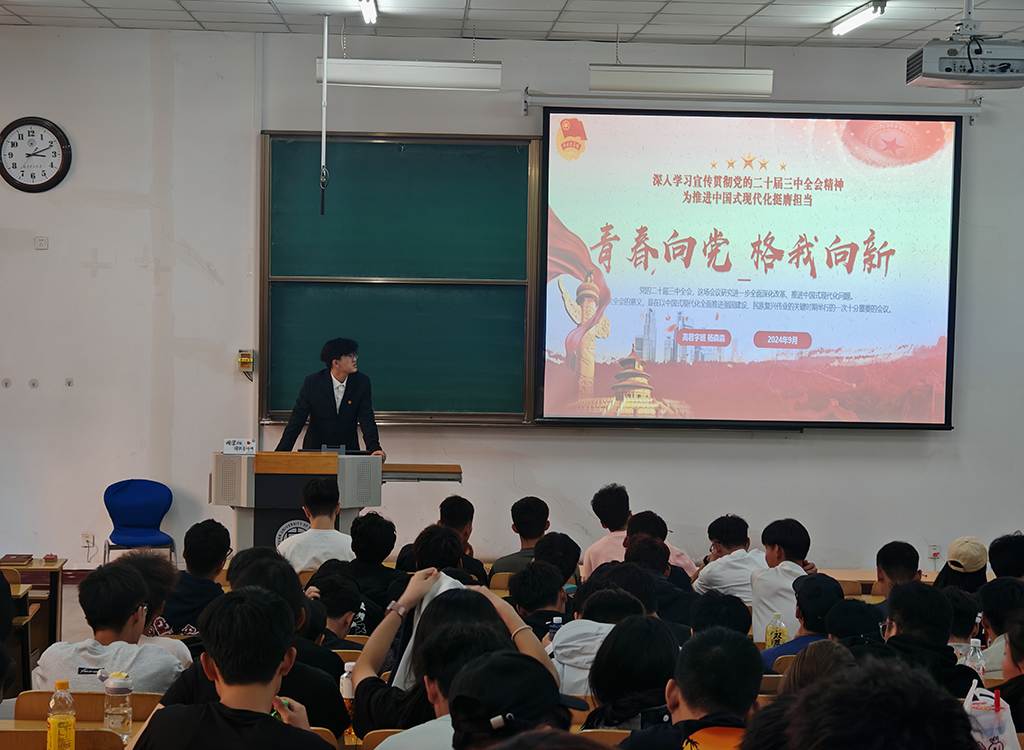 团校办公室主任、“青马工程”高君宇班班长杨森淼以《青春向党,格我向新》为题,围绕党的二十届三中全会历史意义和现实意义等方面指出:二十届三中全会是一次具有划时代、里程碑意义的重要会议。高君宇班学员武玥彤以《以发展强底气,以奋斗壮骨气——学习党的二十届三中全会精神》为题,带领同学们深入学习领会习近平总书记在党的二十届三中全会上的重要讲话精神。