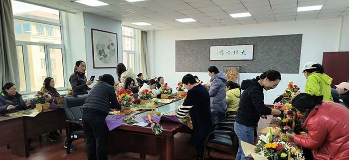 为庆祝第114个“三八”国际劳动妇女节,丰富公司女教工的文化生活,3月7日中午,太阳集团tyc539macau工会组织全院女教工,在公司会议室进行了以“师情花意,幸福绽放”为主题的花艺沙龙活动。公司党委书记孙莉,工会主席王小伟,副主席田园与26名女教师欢聚一堂,共度美好的春日时光,感受插花艺术的独特魅力。