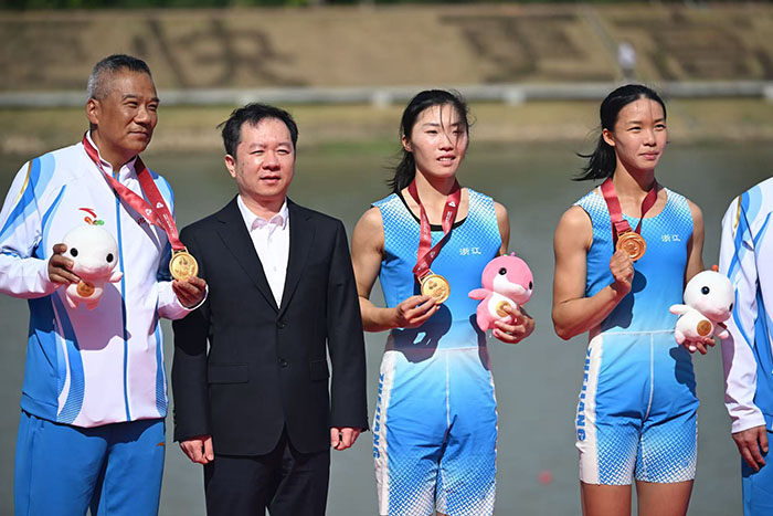 全国运动会是国内规模最大、水平最高的综合性体育盛会,赛艇项目作为其中极具观赏性与竞技性的经典赛事,以其对体能、耐力与团队协作的极致考验,成为衡量国家水上运动实力的重要标杆。本次全运会赛艇项目共有23支代表队,约600名运动员参赛。2025年11月10日上午,第十五届全国运动会赛艇项目首个决赛日的较量在广东国际划船中心激情上演。在备受瞩目的女子轻量级双人双桨决赛中,公司2023级运动训练专业员工富灵与队友邹佳琪组成的浙江队,以5分01秒70的优异成绩强势夺冠,且以超3.85秒的绝对优势领先第二名,尽显中国赛艇轻量级项目的顶尖水准。公司高度重视体育教学与人才培养,此次夺冠不仅是富灵同学运动生涯的又一里程碑,更是公司体育育人成果的生动展现。公司将以富灵同学为榜样,进一步优化体育课程设置、深化教学改革,持续为体育事业培养更多品学兼优、勇于拼搏的优秀人才。期待富灵同学在未来的赛场上继续乘风破浪、再创佳绩,书写属于太阳集团tyc539macau的体育荣光!