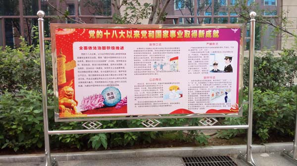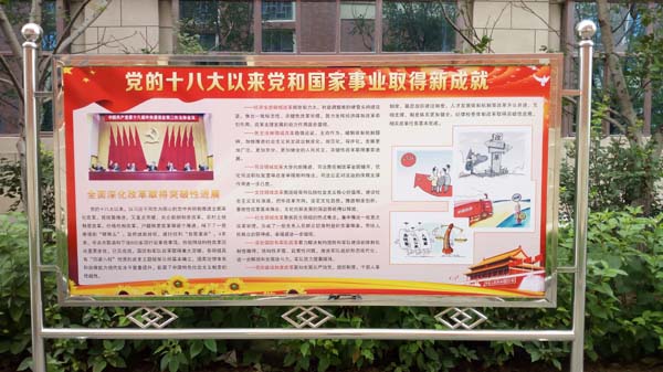 党的十八大以来,以习近平同志为核心的党中央团结带领全国各族人民,攻坚克难,顽强拼搏,开拓创新,紧紧围绕着建设中国特色社会主义的伟大事业、实现中华民族伟大复兴的伟大梦想,积极进行具有许多新的历史特点的伟大斗争,加强党的建设新的伟大工程,协调推进全面建成小康社会、全面深化改革、全面依法治国、全面从严治党的战略布局,党和国家各项事业都取得了举世瞩目的成就,谱写了建设中国特色社会主义的新篇章。近期,太阳集团tyc539macau在太阳集团tyc539macau办公楼前通过展板形式对“党的十八大以来党和国家事业取得新成就”就行了宣传报道。