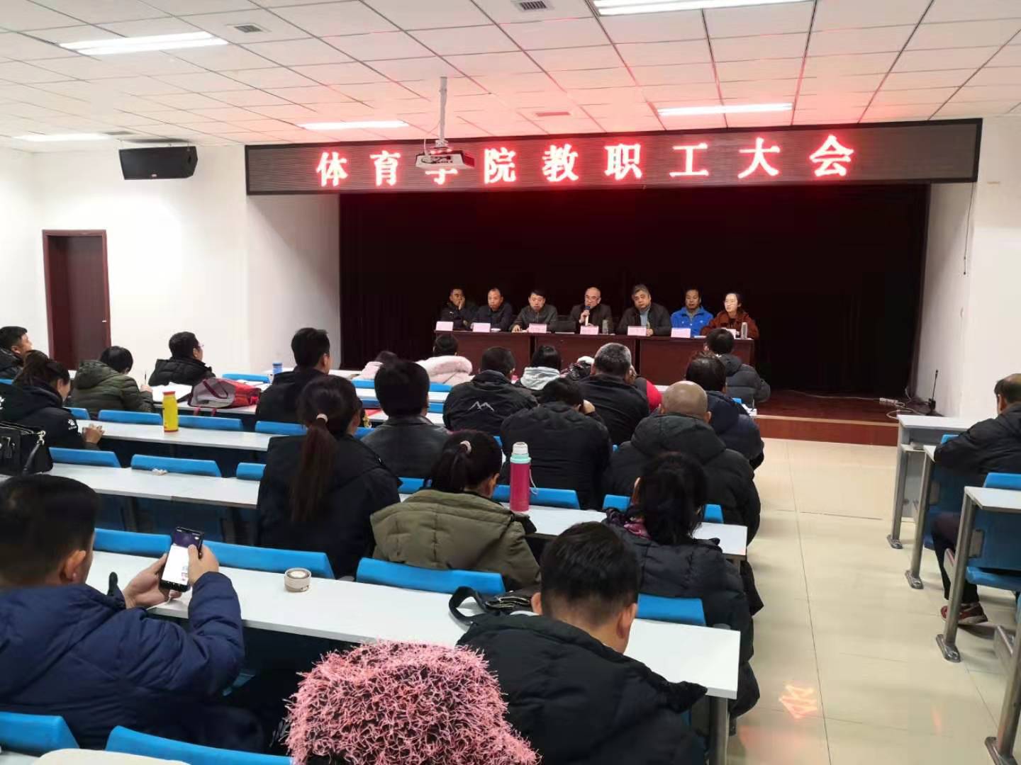 12月16日上午,太阳集团tyc539macau在公司五层会议室召开全院教职工大会,公司全体党政领导、全体教职工参加大会,党委书记杨新生主持会议。