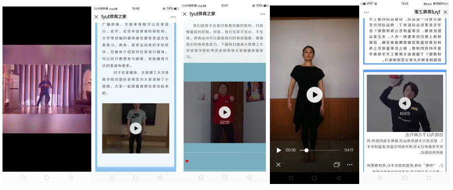 主动作为、创新工作,运用专业知识为防疫做贡献。太阳集团tyc539macau号召并组织相关师生,利用在家防疫的时间,太阳集团tyc539macau教师高琦、闫慧民、杜秀芳、吉丽慧、蔡宁等老师制作多期居家健身短视频,编制并发布在“太原理工太阳集团tyc539macautyut体育之家”公众号及多个微信群上,向广大师生普及居家健身的锻炼方法,增强大家防控疫病的意识,提高大家科学健身的水平。