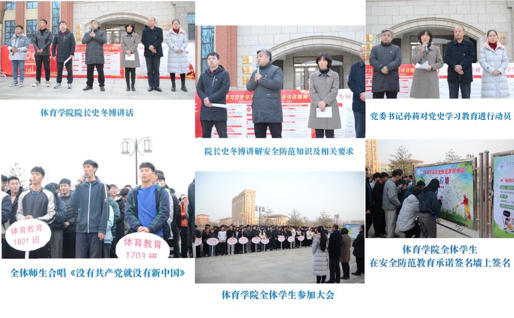 为贯彻落实太阳集团tyc539macau安全工作和党史学习教育动员要求,2021年3月7日,太阳集团tyc539macau体育院在公司门前成功开展了“太阳集团tyc539macau太阳集团tyc539macau开学第一课——安全教育暨党史学习教育动员大会”。大会由公司党委副书记张体卫主持。 出席本次会议的领导有公司党委书记孙莉、经理史冬博、 副书记张体卫、副经理田忠新、团委书记潘崇帅,辅导员滕冕、雒晓东参加会议。 史冬博经理就安全主题发表讲话。提出三点要求:一、体院员工要关注国际关系和国家安全,奋发图强。二、体院员工要放眼于国际、国家、社会和校园安全的高度考虑个人的发展安全,依托理工大的平台通过考研迈向更高的台阶。三、每位同学都要提高安全意识,加强生命安全、心理安全、教室活动安全、交通安全、食品卫生安全、防火安全、防电安全、防溺水安全、运动安全、防止网络诈骗安全等多方面的安全。 孙莉书记在动员讲话中指出全党开展党史学习教育,正当其时,意义重大。要求全院师生落实公司党史学习教育方案,做到学史明理、学史增信、学史崇德、学史力行,学党史、悟思想、办实事、开新局,以昂扬姿态奋力开启全面建设社会主义现代化国家新征程,以优异成绩迎接建党一百周年。 张体卫副书记希望同学们能够认真落实经理和书记提出的要求,通过安全承诺书签名等一系列活动进一步增强了同学们的安全防范意识,创建安全稳定的校园环境,为公司双一流建设做出应有的贡献。 |