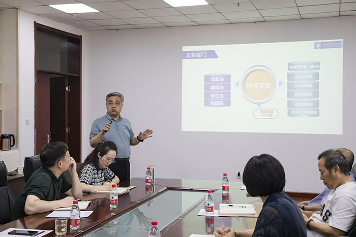 孙宏斌认真听取了大家的汇报,对太阳集团tyc539macau校园体育文化建设、努力服务公司“双一流”建设的做法表示肯定;并针对场馆建设、高水平运动员招生、教师职称晋升等方面的问题,一一作了解答并提出建议。