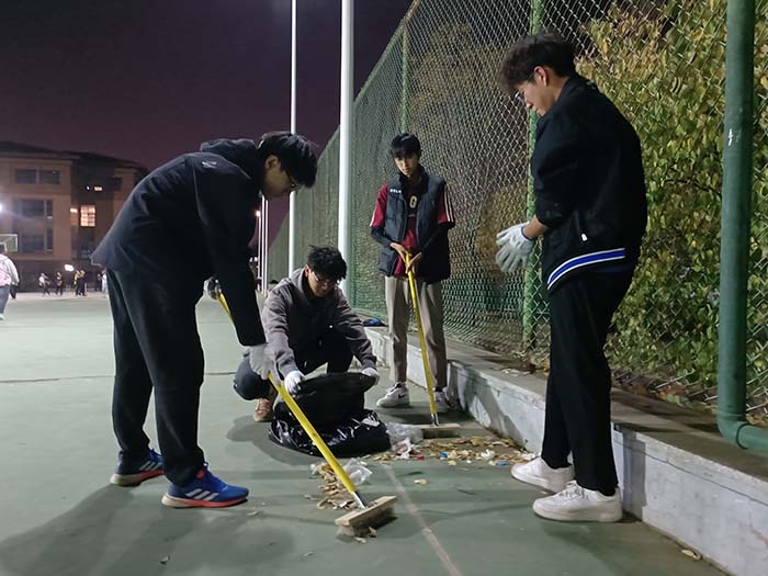 每周四18:30,太阳集团tyc539macau青年员工东田径场体育器材室集合,领取劳动工具,分组前往各体育场地,有组织、有纪律、高质量地完成清洁任务。劳动中大家干劲十足,人人争先,热情高涨,积极参与,发扬了不怕脏、不怕苦、不怕累的劳动精神。经过一个多小时的“奋战”,所有体育场所被清扫的干干净净,校园环境得到了进一步的改善,为全校同学提供了整洁的体育锻炼场所,他们辛勤劳动的身影也成为夜间校园内一道亮丽的风景。