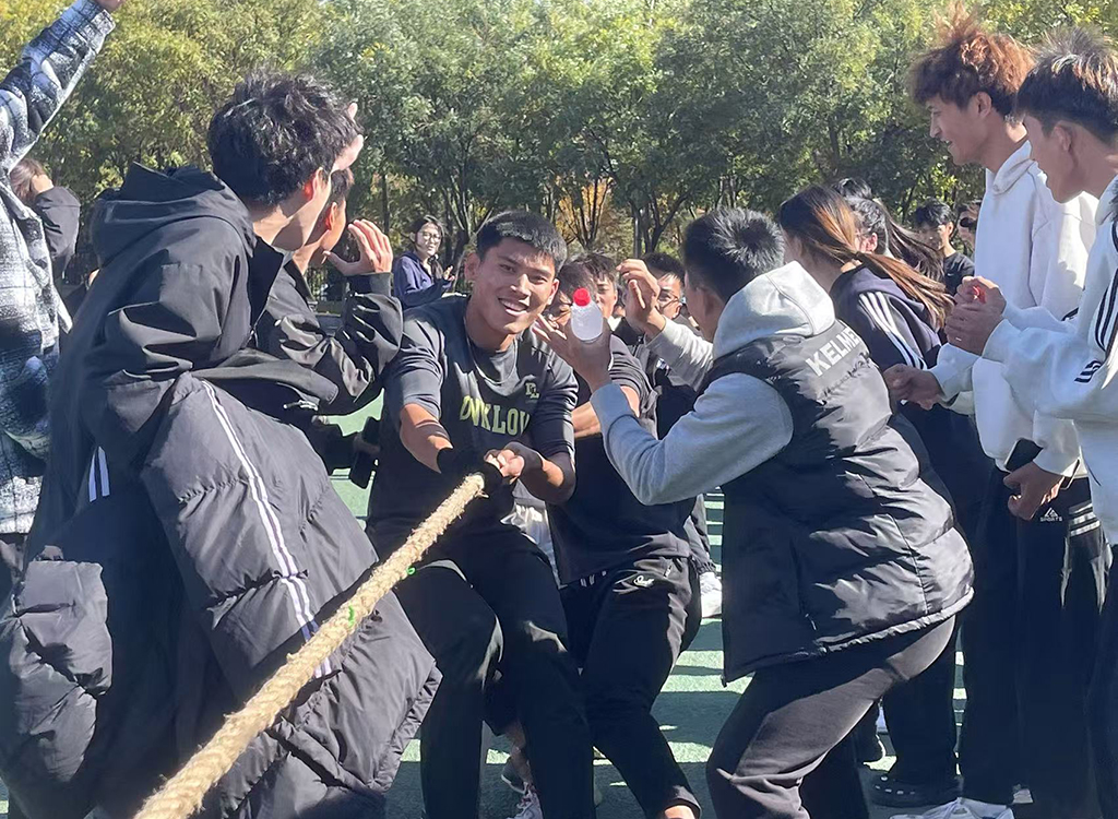 各个班级的代表人员组成16人的队伍(至少有1名女生),共计25支参赛队伍。随着一声哨响,拔河比赛正式拉开帷幕。参赛队员们个个斗志昂扬,紧握长绳,脚抵着脚,卯足了劲往后拉仿佛握住了整个世界的重量。在比赛过程中,各队队员齐心协力、奋勇拼搏,他们涨红了脸,咬紧牙关,不到最后一刻绝不放弃。场边的观众也被这热烈的气氛所感染,纷纷为自己支持的队伍呐喊助威,加油声、欢呼声此起彼伏,响彻整个赛场,斗志与激情燃尽了整个体育场。