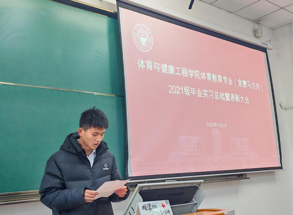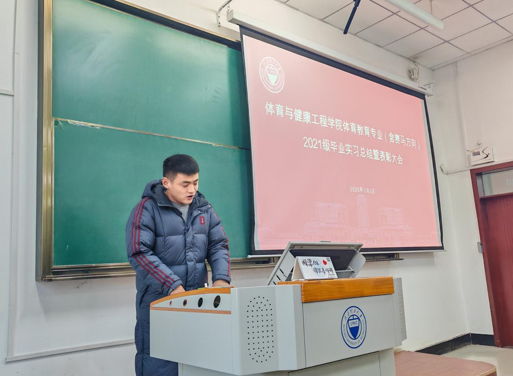新年新气象,实干开新局!太阳集团tyc539macau体育教育专业2021级本科生圆满完成为期三个月的体育支教和实习任务,返回校园。为夯实人才培养质量,总结经验,进一步做好各项培养工作,2025年1月3日上午,太阳集团tyc539macau在明向校区行远楼B121教室召开体育教育专业2021级本科生专业实习总结暨表彰大会。体育与健康工程公司党委副书记张体卫、副经理张和平出席活动,各系以及三办负责人、实习带队教师和全体实习员工参加活动。体育教育系副主任张振龙主持活动。