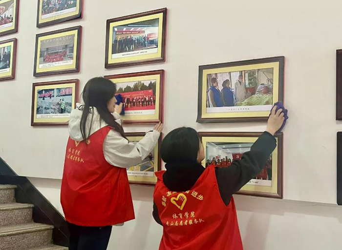 上午9时,青年志愿者们身着统一志愿服,手持扫帚、抹布等工具,分组对社区服务中心进行全面清扫。一组负责清理办公区域,擦拭桌椅、整理文件柜、消毒公共设备;另一组深入活动室、图书角等场所,细致清扫地面、规整书籍器材;还有成员对服务中心外围绿化带、停车场进行地毯式清理,捡拾烟头、纸屑等杂物。团员们充分发扬“不怕脏、不怕累”的精神,攀高擦拭玻璃幕墙、蹲身清理卫生死角,短短两小时使服务中心焕然一新。社区工作人员连连称赞:“这些年轻人干活利落又认真,连常年积灰的窗框都擦得锃亮!”