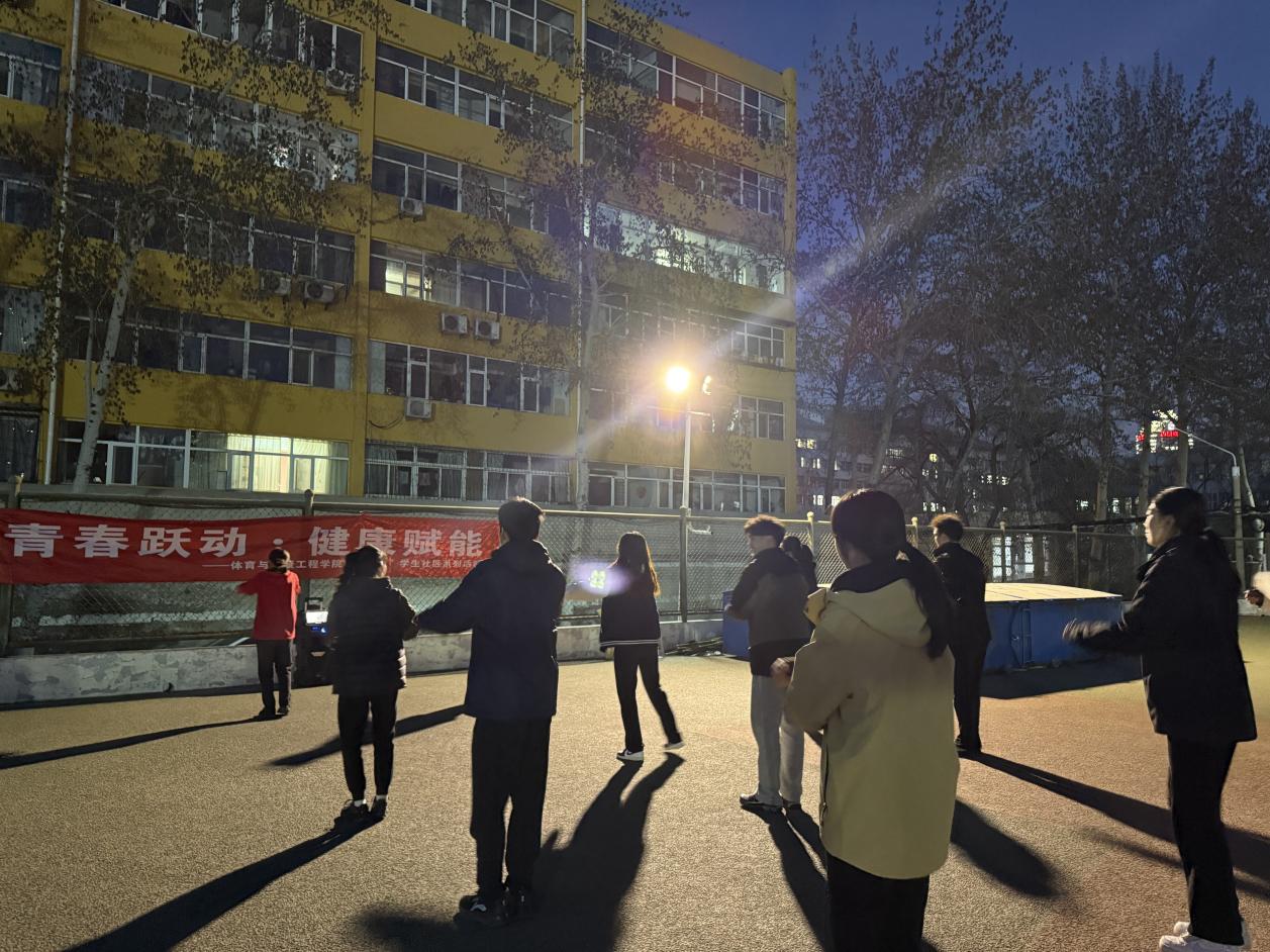 活动自2025年3月起,每周二、周四晚19:00-20:00在虎峪校区操场持续开展。课程由运动训练专业员工团队精心设计,融合时尚音乐与科学有氧动作,兼具趣味性与实效性。整套健身操动作简洁易学,覆盖不同体质与年龄层次的员工需求,既能锻炼身体协调性和节奏感,又能帮助员工在律动中释放压力、享受运动乐趣。