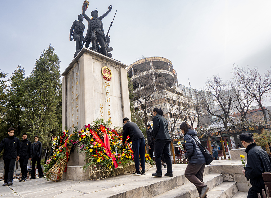 上午8时,全体同学统一着黑色正装、佩戴团徽,在文瀛公园东门集合,在庄严肃穆的氛围中,拉开序幕有序开展祭扫活动。在革命烈士纪念塔前,父老乡亲们深情讲述,员工仿佛回到了那个热血沸腾的年代。全体成员默哀后缓步上前敬献鲜花,全体人员面向烈士雕像行三鞠躬礼,表达深切缅怀之情。