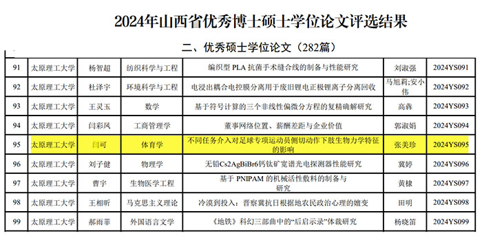 2021级硕士生闫可荣获 山西省优秀硕士学位论文