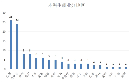 公司本科毕业生就业地区较为广泛,且主要集中在山西、内蒙古、北京、浙江、江苏等一线城市。相较于本科生而言,硕士毕业生就业区域较集中,大多数在山西省内就业。