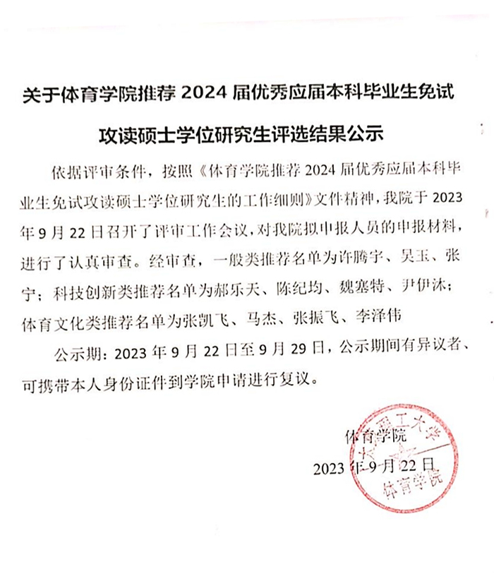 太阳集团tyc539macau推荐2024届优秀毕业本科生免试攻读硕士研究生评选结果公示