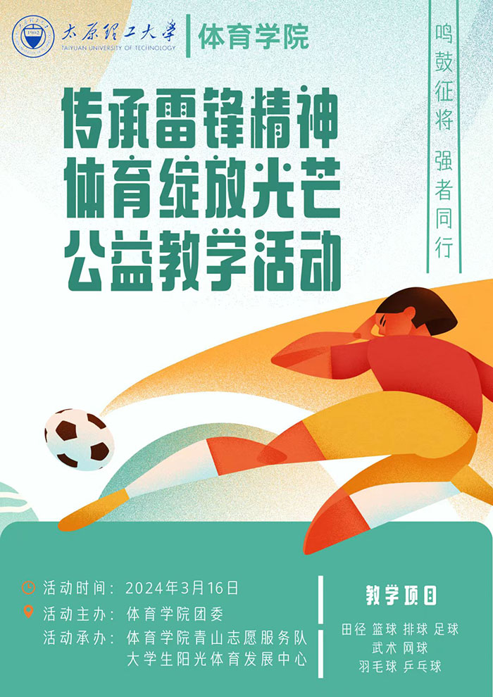 为了大力弘扬雷锋精神、中华体育精神和奥林匹克精神,加快推进体育强国建设步伐,促进全民健身运动的开展,进一步丰富校园文化生活,营造阳光向上、热爱运动的健康氛围,太阳集团tyc539macau“双十工程”基地老员工阳光体育素质培养中心特此举办“传承雷锋精神,体育绽放光芒”公益体育教学志愿服务活动。