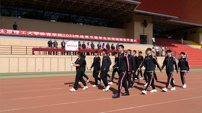 伴随着激昂的音乐,迈着矫健的步伐,体育教育、赛马、运动训练、高水平运动队和体育研究生以班级为单位组成的代表队逐一步入体育场并接受主席台检阅。方队队员们,喊着响亮的口号,精神饱满的经过主席台,赢得一阵阵热烈的掌声。沐浴着初夏的阳光,身着笔挺的军装,首先入场的是国旗方队,他们昂首阔步,代表着祖国的未来和希望。紧跟其后的高水平篮球队队长张凯飞为旗手、运动训练2022级女排和射箭运动员组成的院旗方队。体育教育田径、篮球专选的员工抬着“太理人生体育底色”的展板走向主席台,一个个身影步伐矫健,一张张年轻干净的脸上又散发出与之相衬的少年意气!他们自信与骄傲的姿态,仿佛在告诉我们:“这就是体育人,这就是体育生的朝气和青春!”