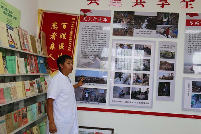 7月12日,实践队前往大宁县徐家垛乡乐堂村拜访了全国党的十九大代表、全国优秀共产党员、“最美医生”贺星龙。在光影交错的《榜样3》纪录片中,实践队员们仿佛穿越时空,亲眼见证了贺星龙医生那些感人至深的事迹。随后,随着贺医生的引领,一行人踏入了他那简陋却充满爱与希望的工作室与村卫生室。四壁之上,密密麻麻的荣誉奖章,如同星辰般璀璨,它们不仅是荣誉的象征,更是贺医生二十四年如一日默默耕耘、无私奉献的见证。