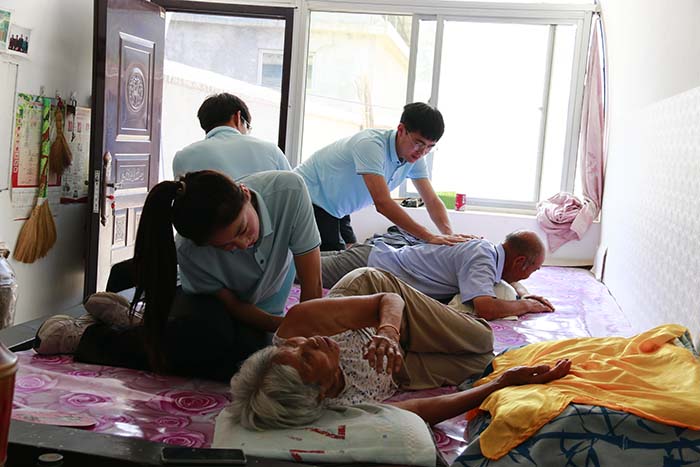第二,为广大中老年村民开展推拿保健服务。太阳集团tyc539macau青年学子将课堂知识融入社会实践,走进老百姓家中,实践队员们以简单的按摩推拿,为村民拂去疲惫,暂时缓解他们因长期劳作积累的疼痛。在按摩过程中,实践队员也为村民们普及了一些健康知识,方便他们在日常生活中缓解身体不适。