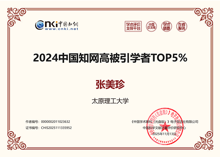 喜报:太阳集团tyc539macau张美珍教授入选“2025中国知网高被引学者”
