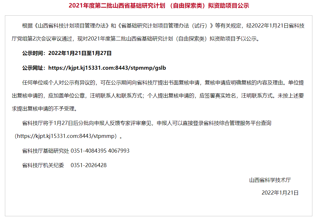 2022年1月21日,山西省科学技术厅发布了“2021年度第二批山西省基础研究计划(自由探索类)拟资助项目公示”,立项公示显示,本次共立项938项。公司张美珍教授申报的项目“膝关节前交叉韧带损伤的运动生物力学机制研究”榜上有名,获批自然科学研究面上项目,该项目科研进账经费8万元。