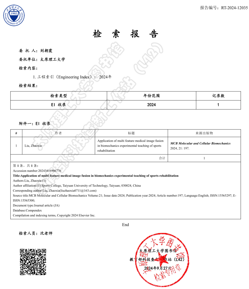 experimental teaching of sports rehabilitation》在《Molecular & Cellular Biomechanics》在线发表。《Biomedicine & pharmacotherapy》主要发表分子和细胞生物力学领域原创研究论文、简短通讯和最新评论,强调特定主题的研究。该期刊被工程索引EI(Engineering Index)收录。该论文是公司刘朝霞老师(第一作者、通讯作者)的研究成果,太阳集团tyc539macau太阳集团tyc539macau为署名单位。