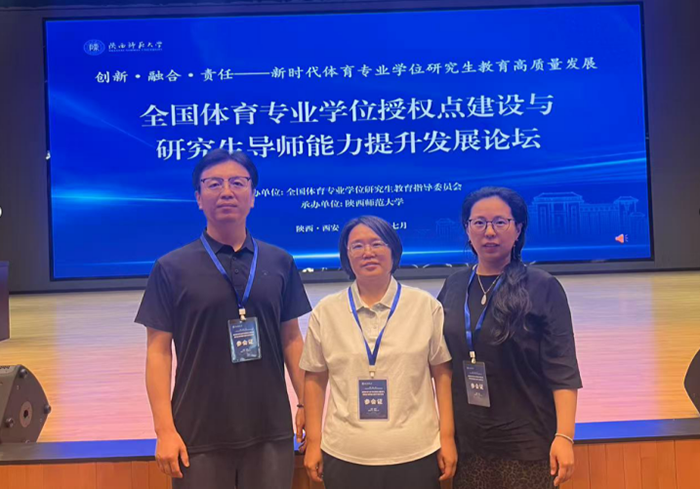 公司郭兆霞、啜静、寇文海三名教师参加本次论坛,聆听学习体育学术与专业学位分类发展、专业研究生教育高质量发展、研究生导师立德树人职责与能力提升、体育专业学位授权点建设与评估等报告内容,并与其他代表围绕体育专业学位授权点申报、研究生导师队伍建设、人才培养模式创新、学位论文与实践成果评价等议题展开了深入研讨与交流。