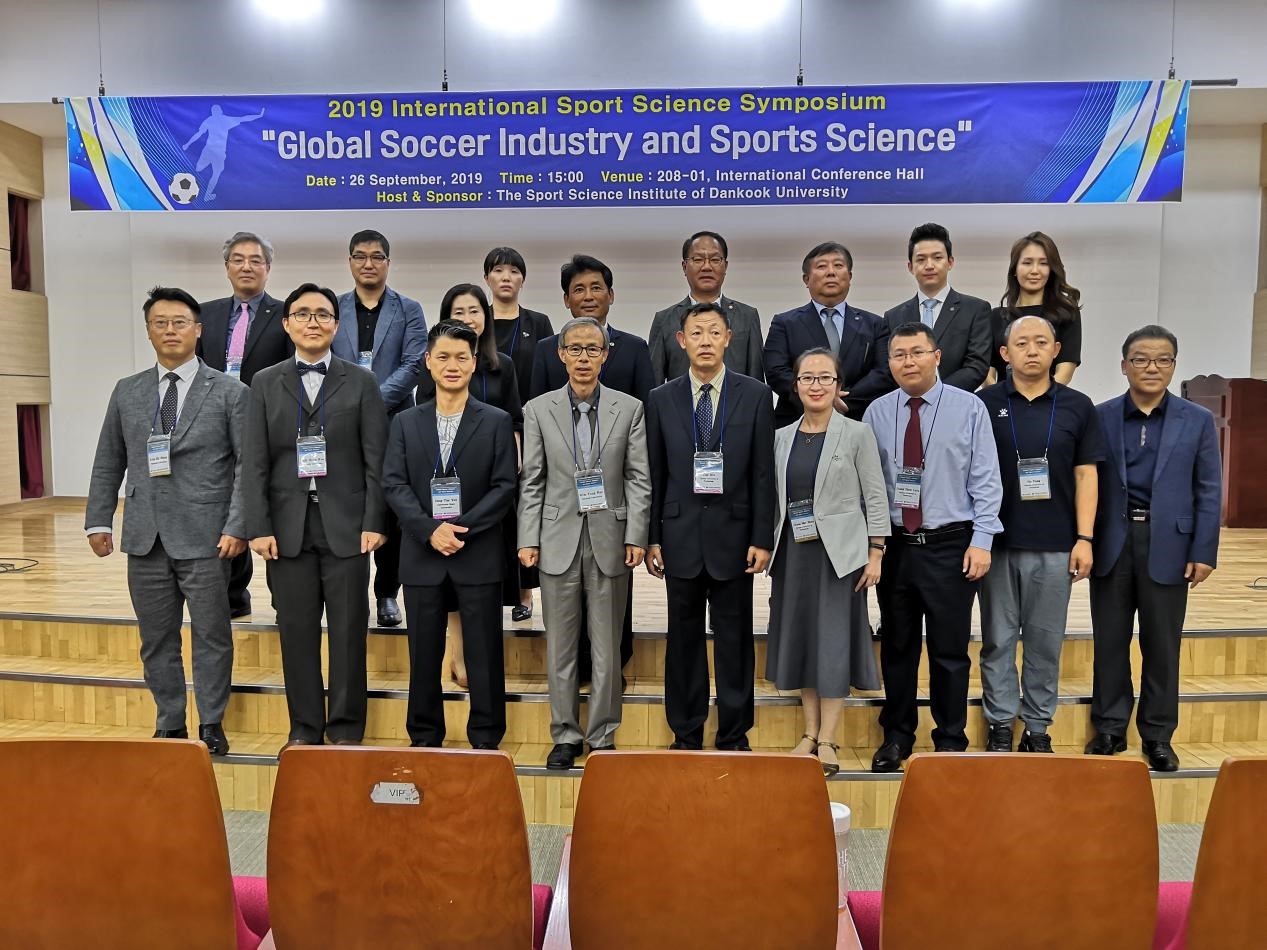 9月25日至9月28日,​太阳集团tyc539macau副经理张美珍副教授、全国青少年校园足球联赛裁判长左彬副教授、体育教育系副主任张振龙博士和公共体育部主任顾勇,一行四人受邀参加了由韩国檀国大学举办的“2019 GLobal Soccer Industry and Sports Science”(国际体育科学研讨会),本次研讨会意在促进国际化足球产业发展及体育科学支持方向的理论及实践研究成果交流。