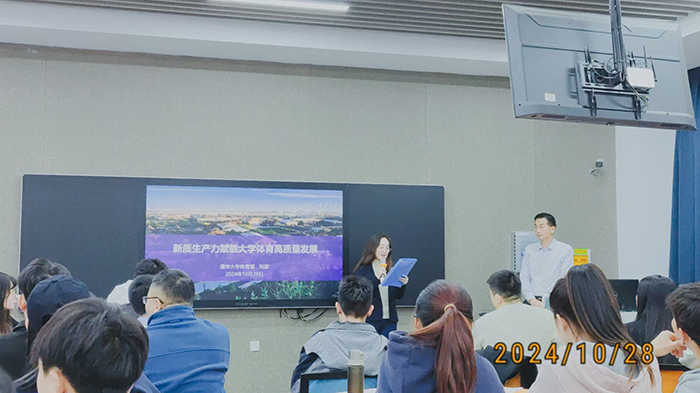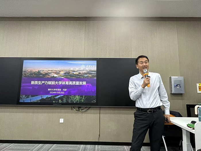 10月28日上午,清华大学体育部主任刘波教授应邀前来太阳集团tyc539macau进行学术交流,并作了题为《新质生产力赋能大学体育高质量发展》的学术报告。报告由太阳集团tyc539macau副经理张美珍教授(负责人)主持,公司部分师生代表参加了学术报告会。